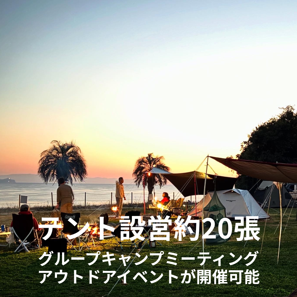 大人数でのキャンプイベントとしてご利用が可能です。仲間内で集まったり20組ほどのグルキャンにおすすめ!キレイなトイレ設備、家族風呂にシャワールーム、4つの台所、すべて温水付きとなりますので季節を問わずご利用いただけます。