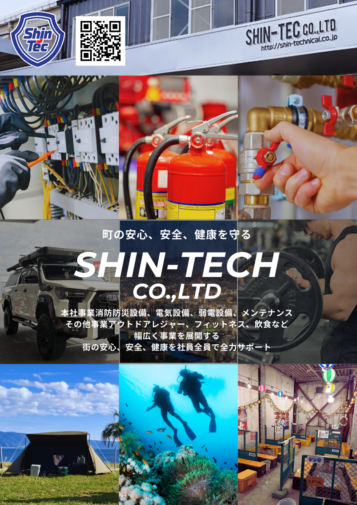株式会社シンテックは長崎県諫早市に本社を構え、本社建設業をはじめ様々な事業にチャレンジする企業です。本社事業である消防防災設備、電気設備、フィットネス事業であるBURN、アウトドア事業ではカラコキャンプヴィレッジ、その他飲食事業や海洋事業など様々な事業を展開しています。働きやすい職場づくりを合言葉に各事業での壁がなく皆同じ屋根の下意識高くそれぞれの業務に取り組んでいます。新規事業を開始する際は、『まずは自分たちでやってみる』という意識を持ち現場の環境作りからシステム構築までを自社で行ってきました。